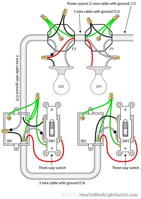 Web how it works is that the hot wire coming in from the electrical panel is connected to the common screw of the first light switch in the circuit. From it, there is 3. Web (1) cable (two wires + gnd, usu b, w and bare ground) for line power in, i.e., from the panel and the black in this cable always hot if the breaker is on, (2) cable for.